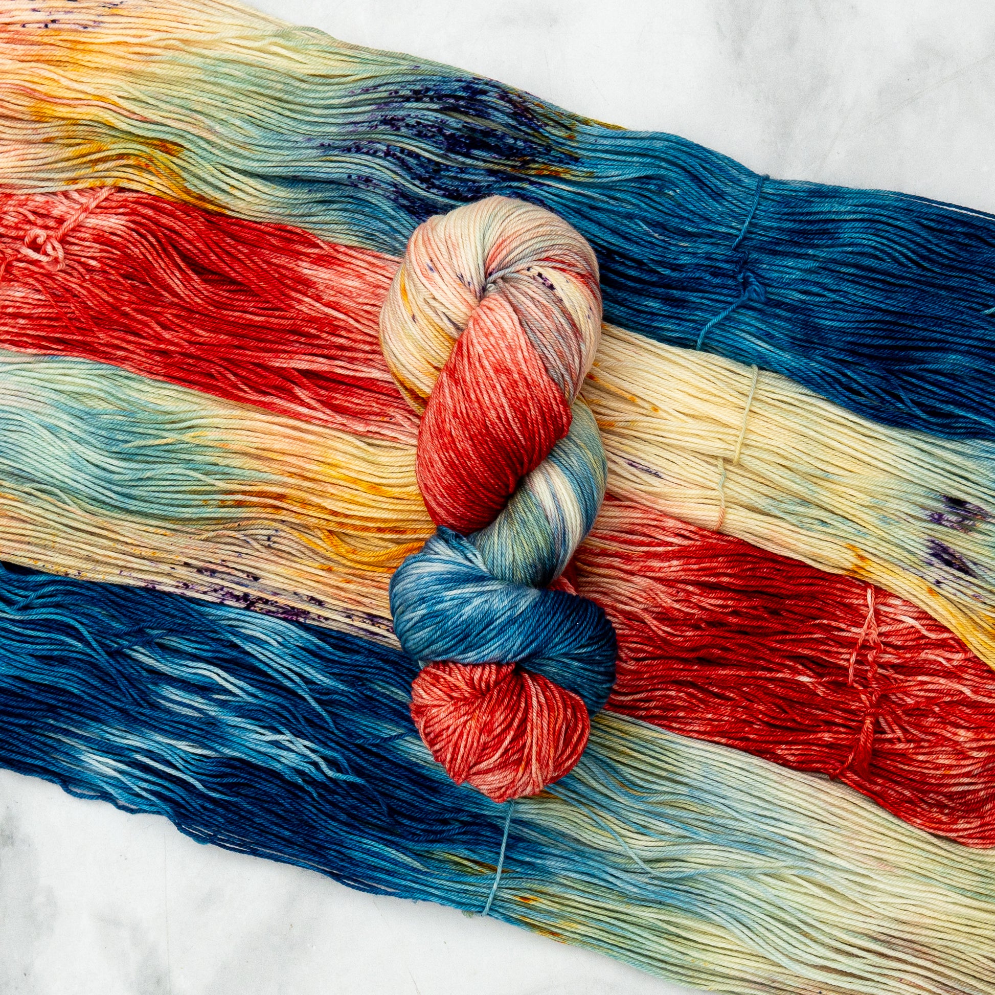 Please note that, due to the nature of hand-dyed yarn, no two skeins of yarn will be exactly alike. I recommend alternating skeins every few rows for projects using multiple skeins of the same colorway. If you order multiple skeins of the same colorway, I will do my best to select skeins that are the closest match.