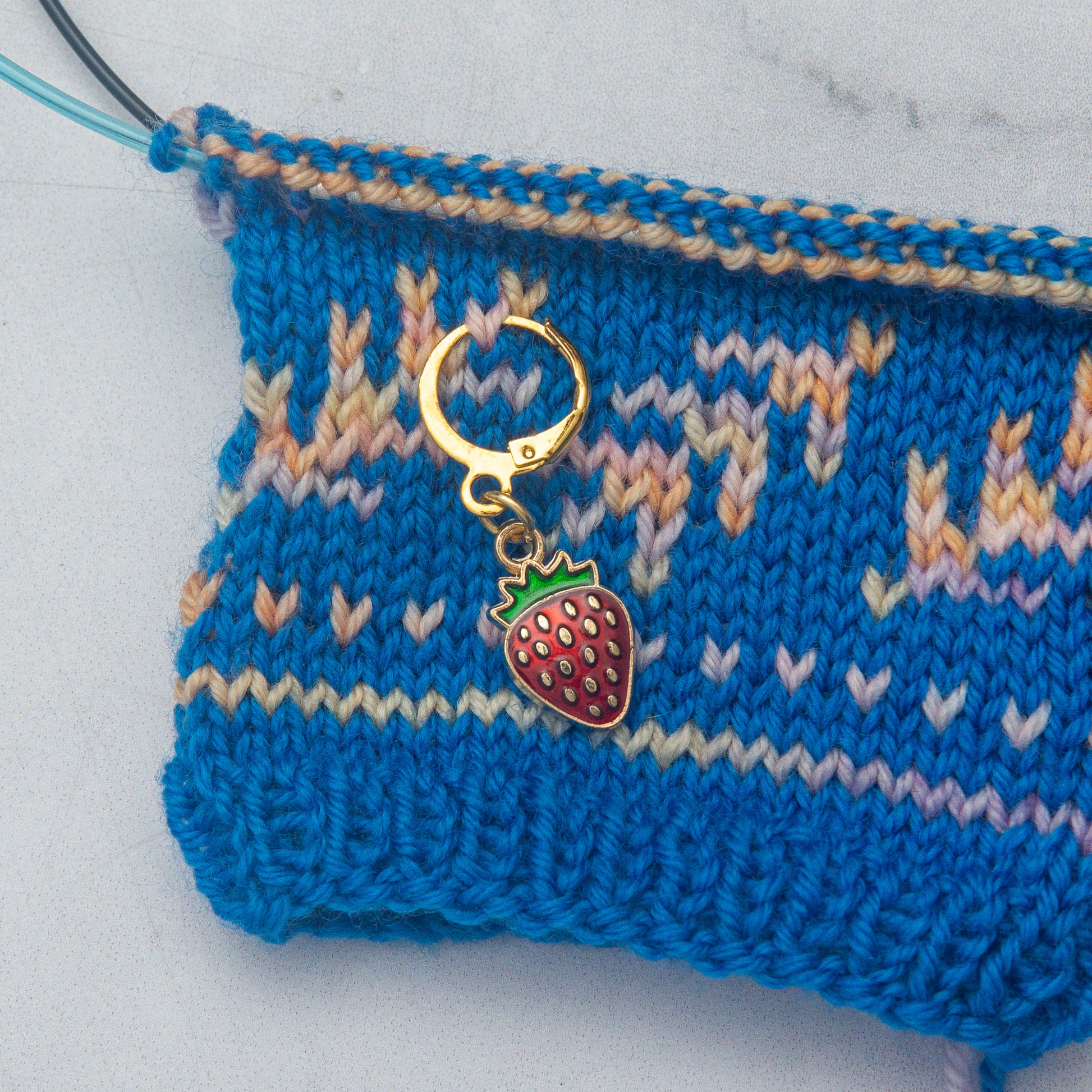 A sweet set of four enamel stitch markers to use with all of your knitting and crochet projects. The set comes with two red and two pink strawberries and is packaged on a backing card. Strawberry charms measure 1.7 x 1 cm. Choose your finish option: